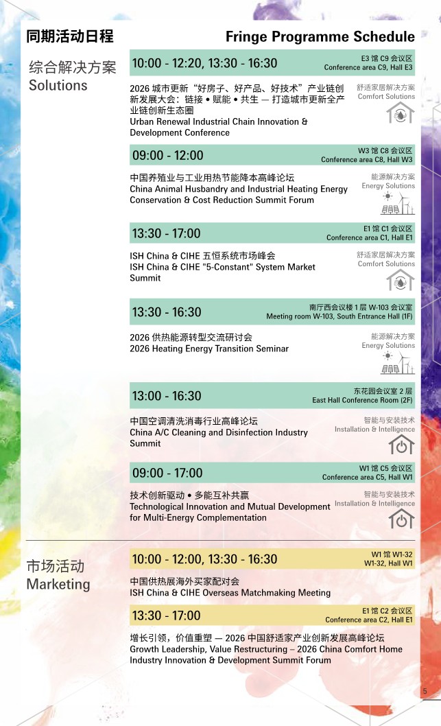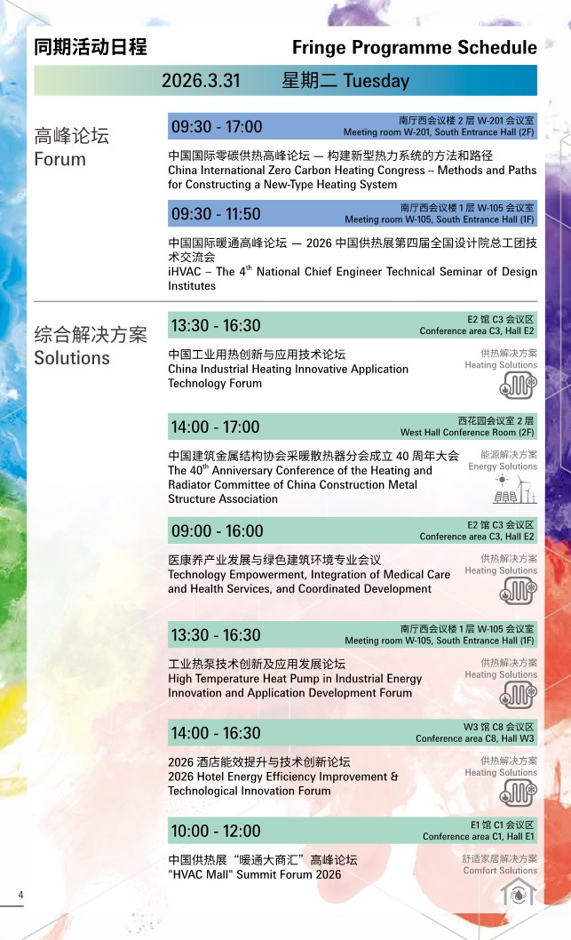 中国供热展的同期活动一直备受行业赞誉,每届展会期间都为与会人士带来崭新技术与市场资讯。逾60场论坛及会议将于2026中国供热展展会现场同期上演。来自多国的政府官员、驻华代表、专家学者及优秀企业代表将围绕零碳供热、城市更新、工商业用热、医疗康养、酒店节能、能源管理、低碳转型等热门议题展开深度对话,携手探讨暖通行业的机遇与挑战,为产业可持续发展注 入新动能。